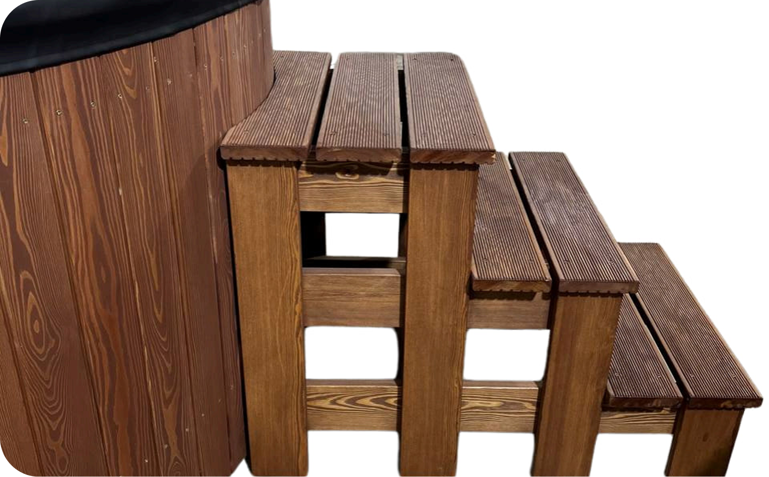 Удобные и надежные лестницы из дерева для купели. В нашем производстве мы используем только лиственницу высшего сорта. Забудьте о скользких и неустойчивых лестницах! Наши лестницы из натурального дерева — это комфорт и безопасность. Выбирайте вариант с перилами для дополнительного удобства или остановитесь на классическом исполнении без перил.